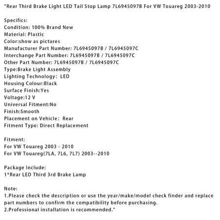 Hinten Dritte Bremsleuchte LED Schwanz Stop Lampe 7L6945097B Für VW Touareg 2003-2010