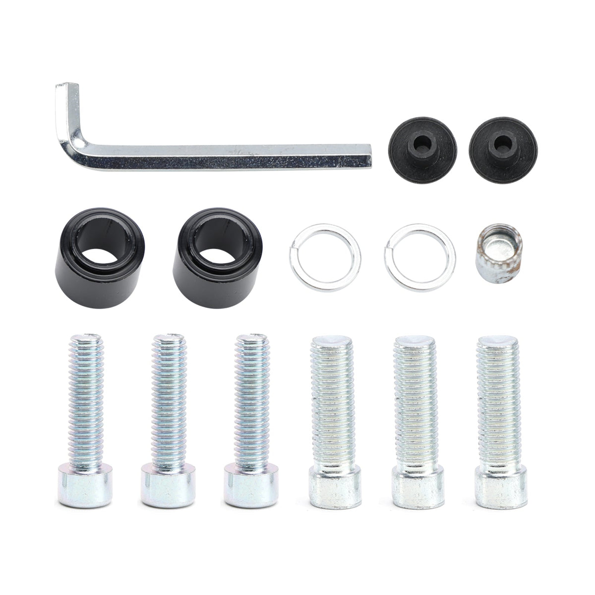 Im Lieferumfang enthalten: 2x rechte M8x30-Schrauben, 2x rechte M10x30-Schrauben, 1x linke M10x30-Schraube, 1x rechte M8x30-Schraube, Manschetten und Spiegellochkappen.