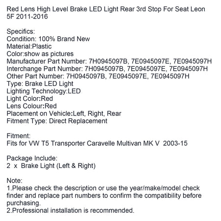 Rote 3. hohe Bremsleuchte hinten Scheune 4 Tür für VW Volkswagen Transporter T5 T6