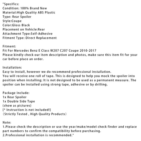 Gloss Black Rear Spoiler For Mercedes-Benz E-Class W207 10-17 Coupe
