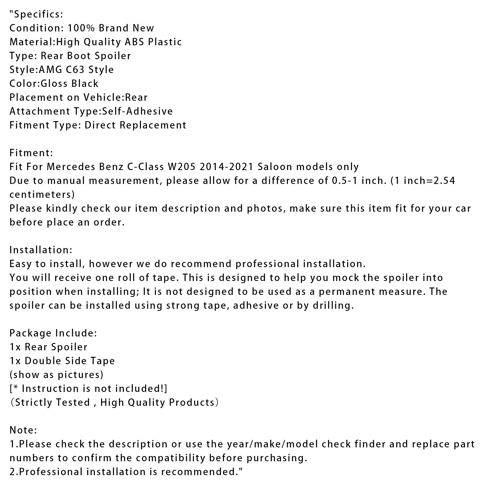 Fit For Mercedes Benz C-Class W205 2014-2021 Saloon models only