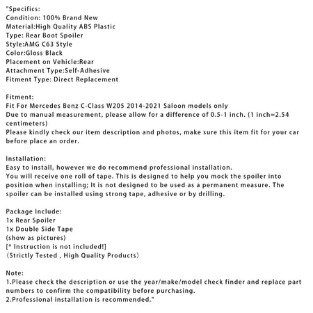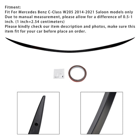 Gloss Black Rear Spoiler For Mercedes-Benz C-Class W205 14-21 AMG C63 Style