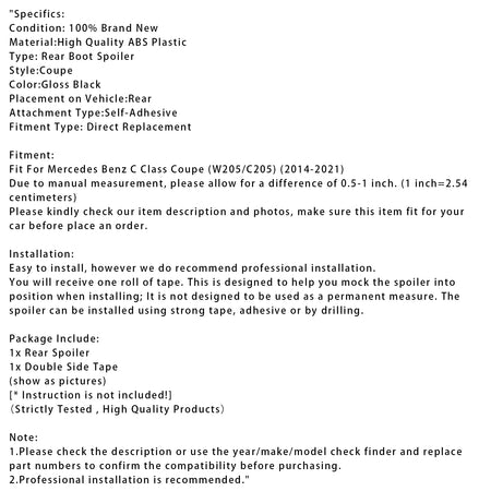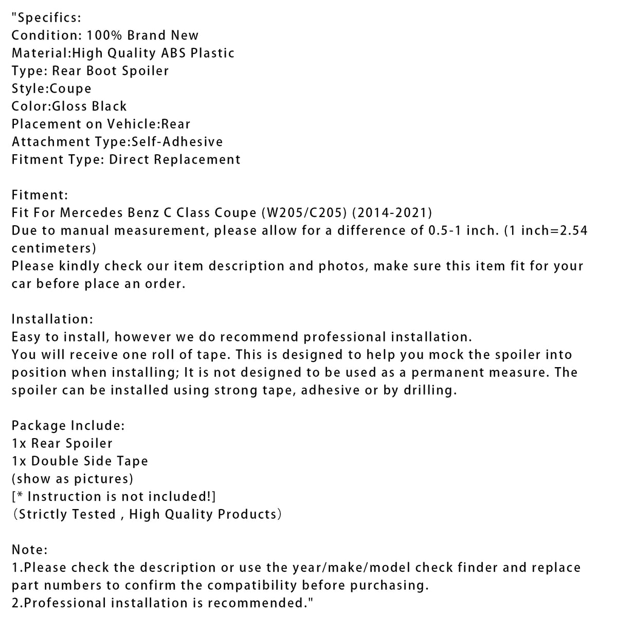 Gloss Black Rear Spoiler For Mercedes-Benz C-Class W205 C205 Coupe 2014-2021