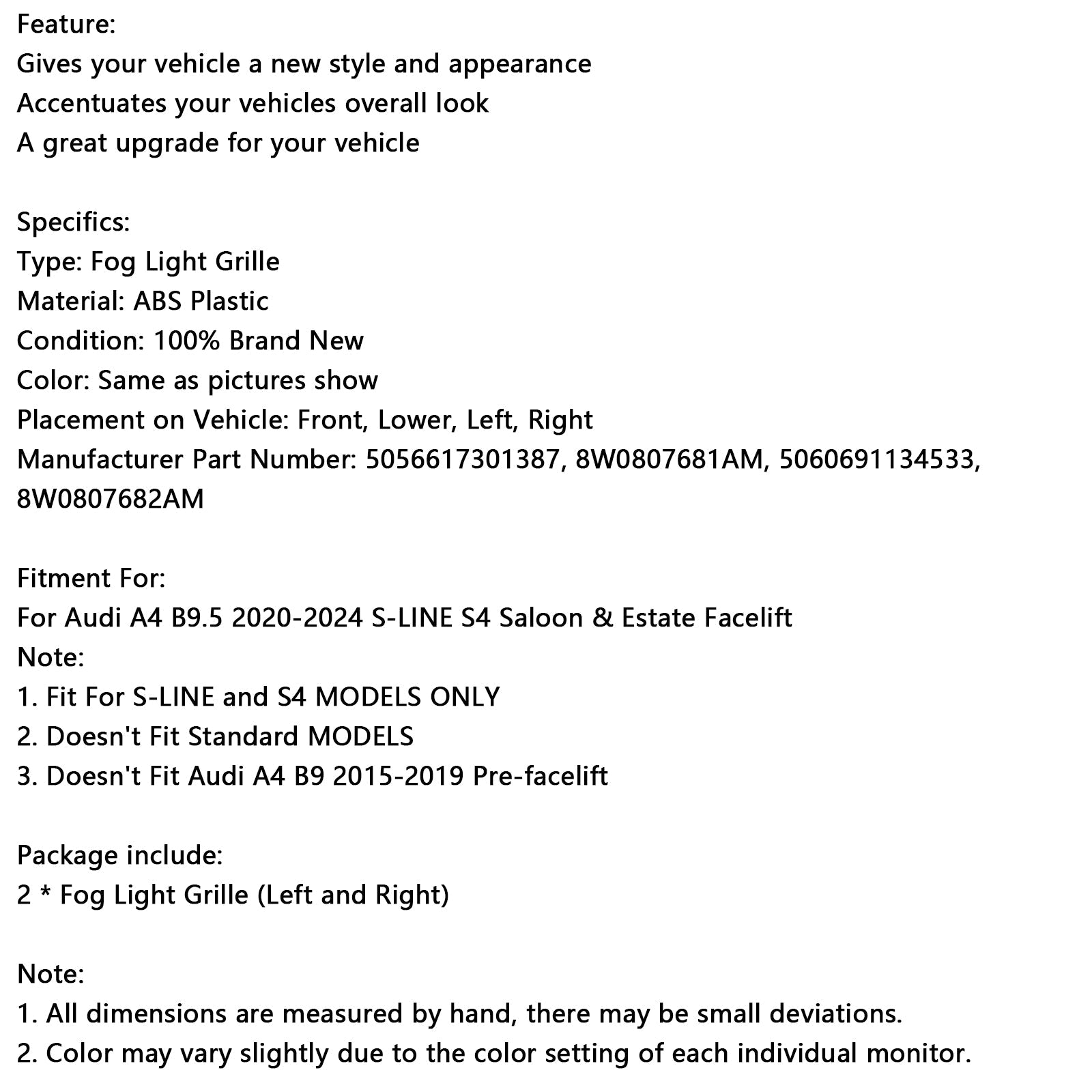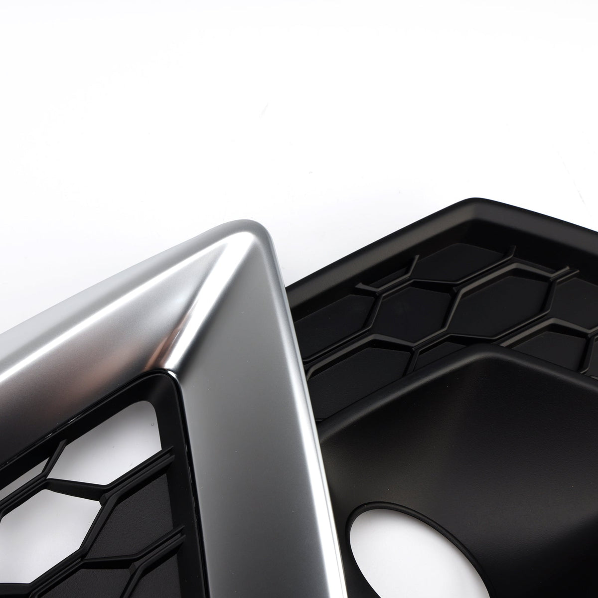 Silberne untere Nebelscheinwerfer-Kühlergrillabdeckung für die vordere Stoßstange passend für Audi A4 B9.5 S-Linie 2020–2024