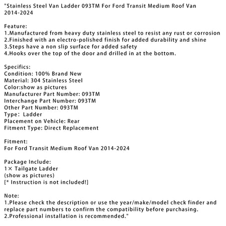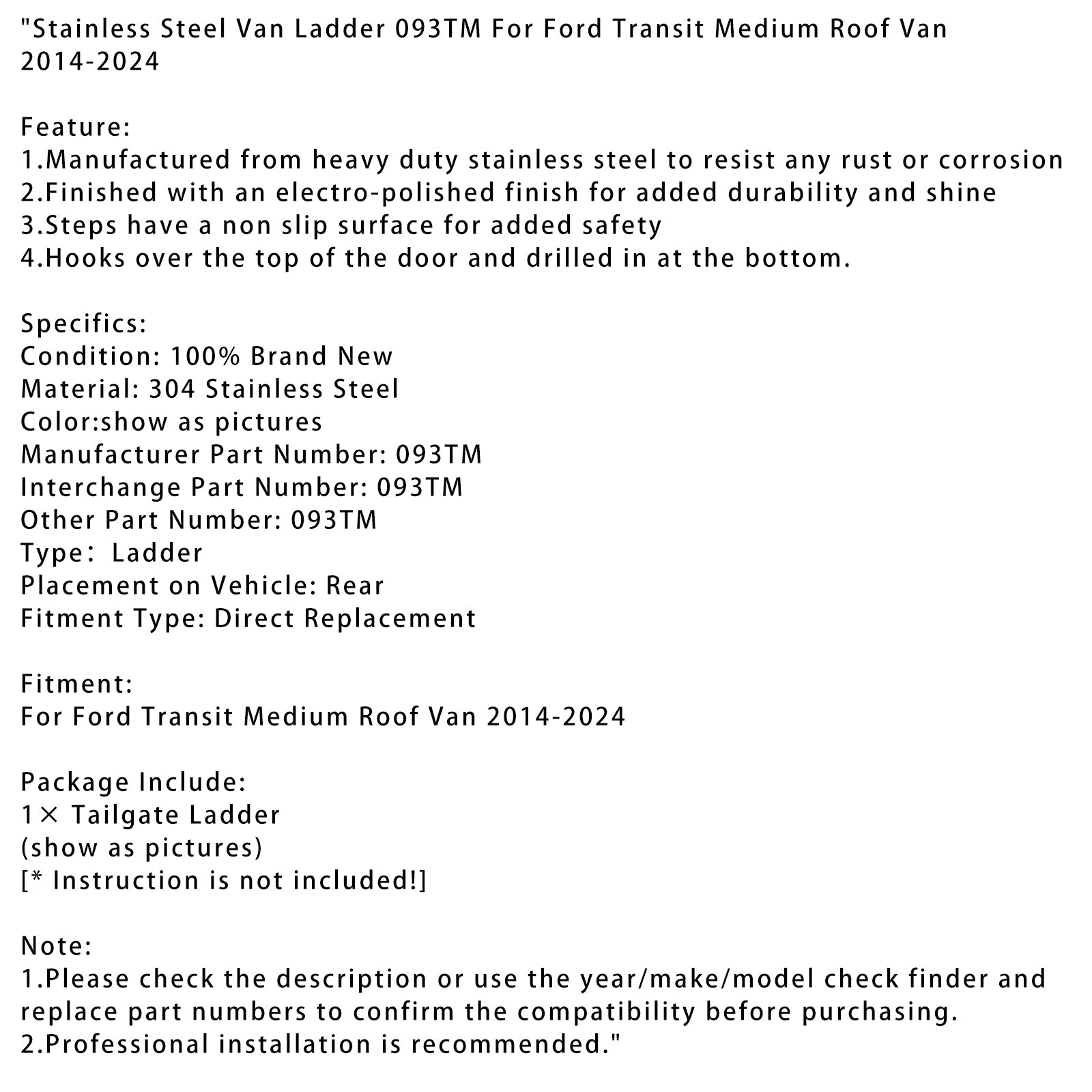 Edelstahl-Transporterleiter 093TM für Ford Transit Van mit mittlerem Dach 2014-2024