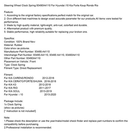 Lenkrad-Uhrfeder passend für Hyundai i10 Kia Forte Koup Rondo Rio 93490A4110