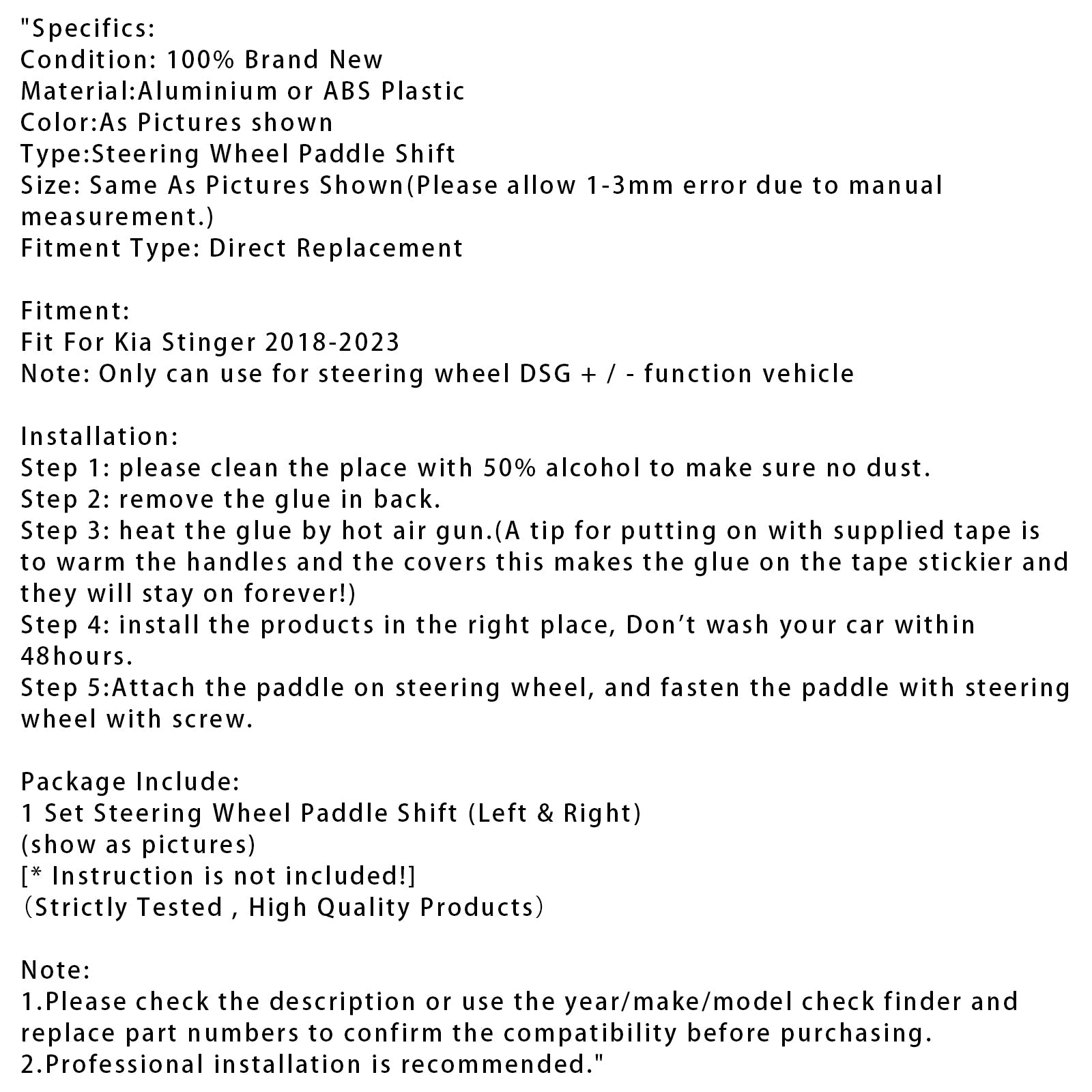 1. Bitte überprüfen Sie vor dem Kauf die Beschreibung oder verwenden Sie den Prüffinder für Jahr/Marke/Modell und ersetzen Sie die Teilenummern, um die Kompatibilität zu bestätigen.