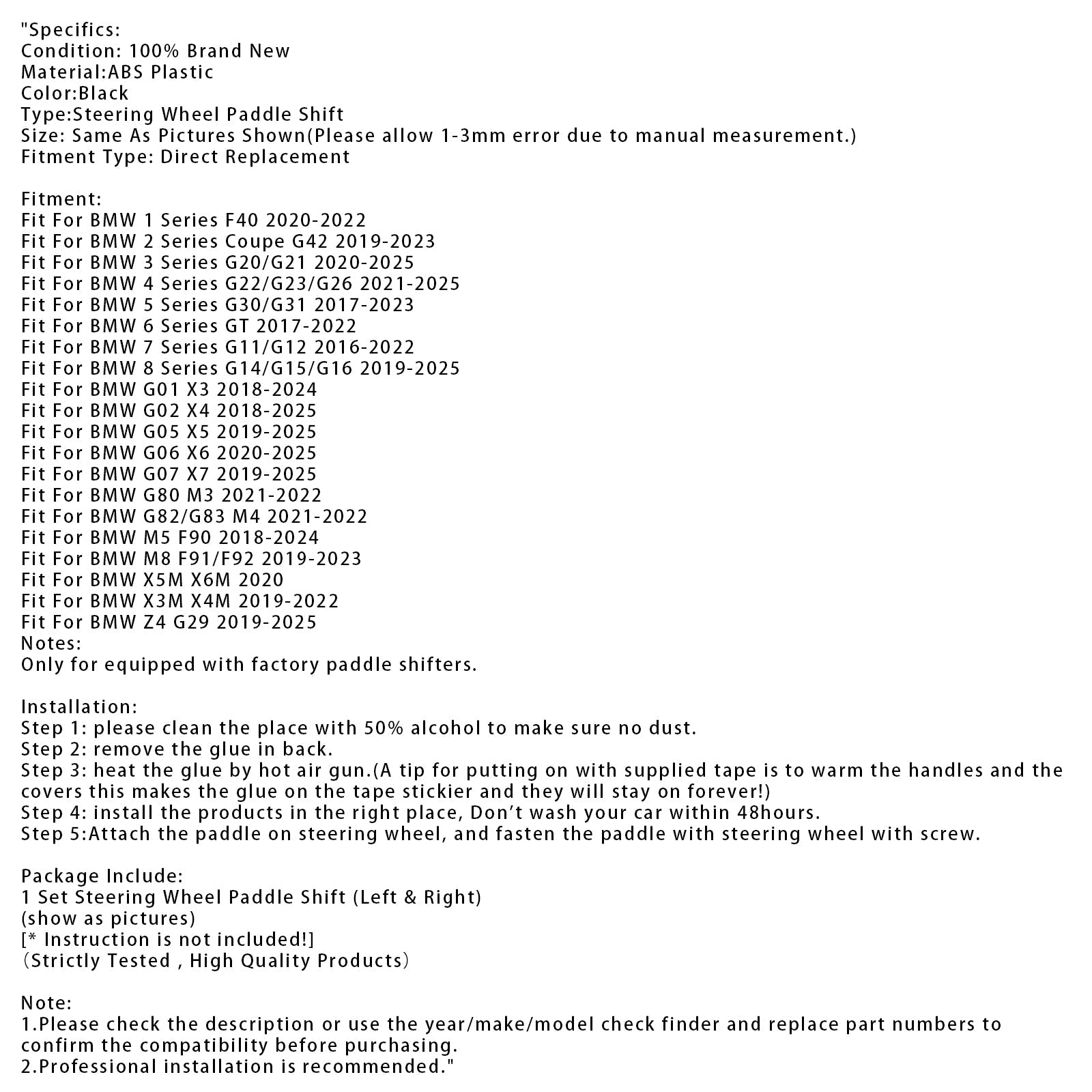 Lenkrad-Schaltwippen-Erweiterungen für BMW G20 G21 G30 G31 F40 F22, Schwarz