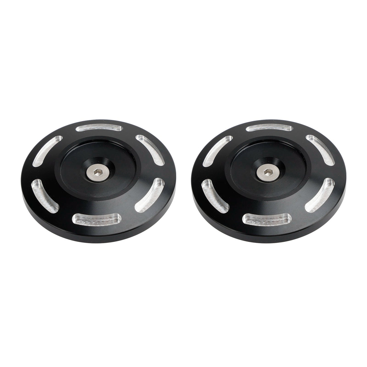 The aluminium caps cover the swing-arm holes on your motorbike, left and right side, 2-piece kit.