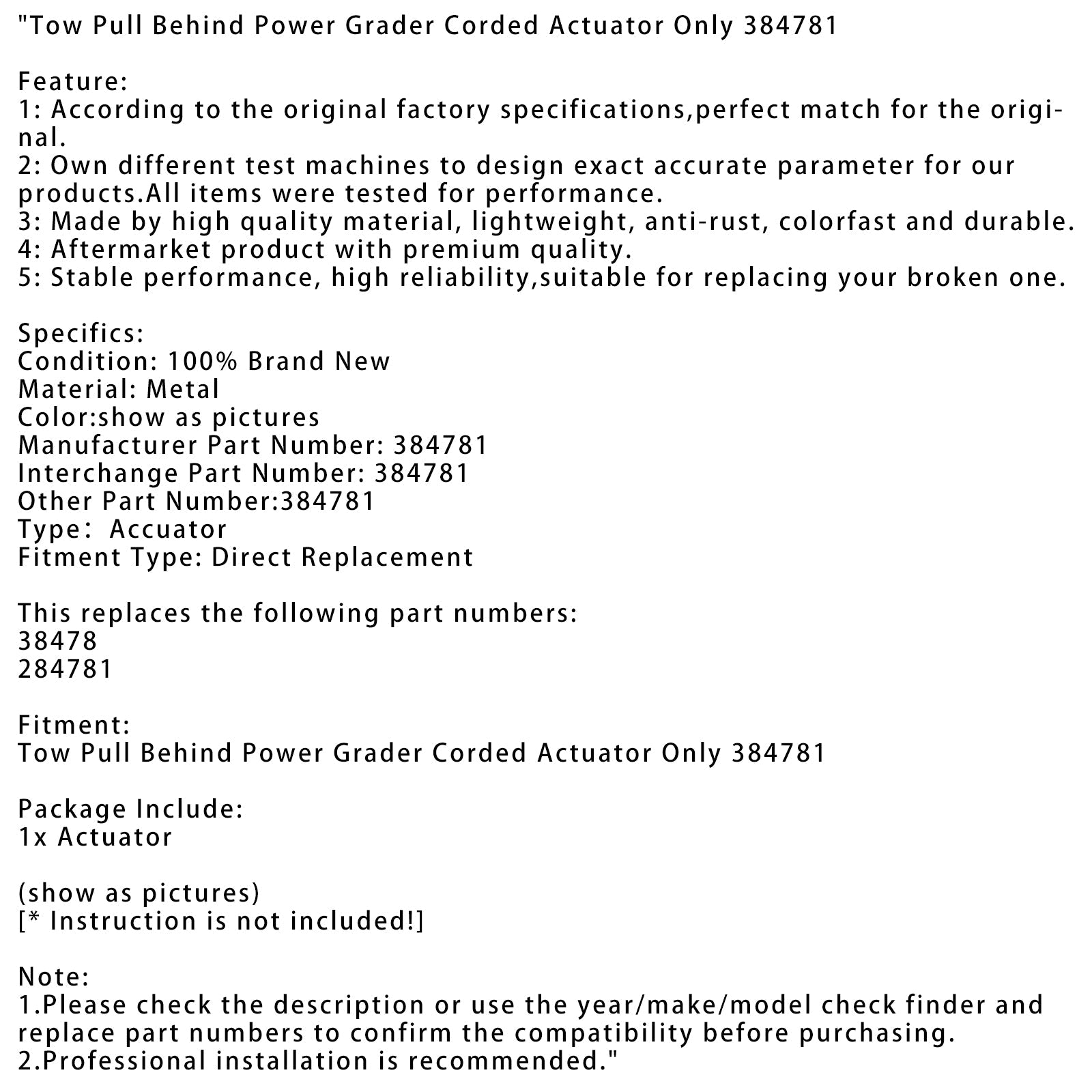 Abschlepp-/Push-Hinterrad-Grader, nur kabelgebundener Aktuator 384781