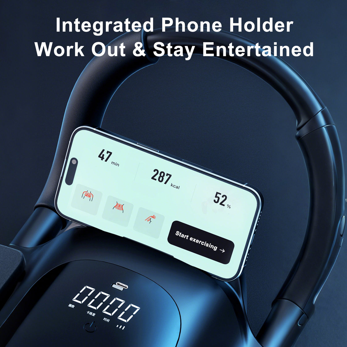 Smart Features for Better Training: Equipped with a large LCD display that tracks time, reps, and calories. USB-C charging ensures convenience, while the integrated phone holder lets you enjoy music or videos to stay motivated.