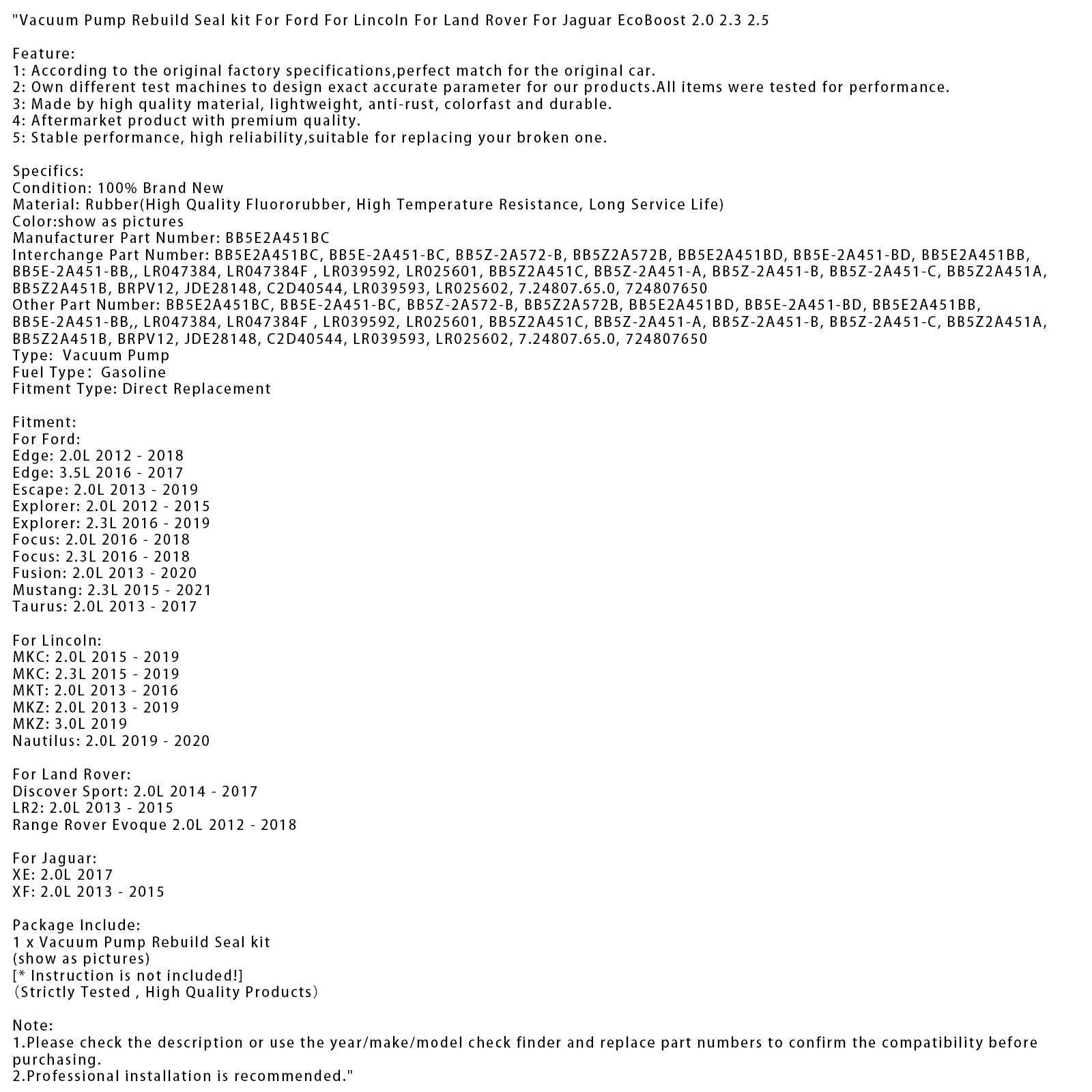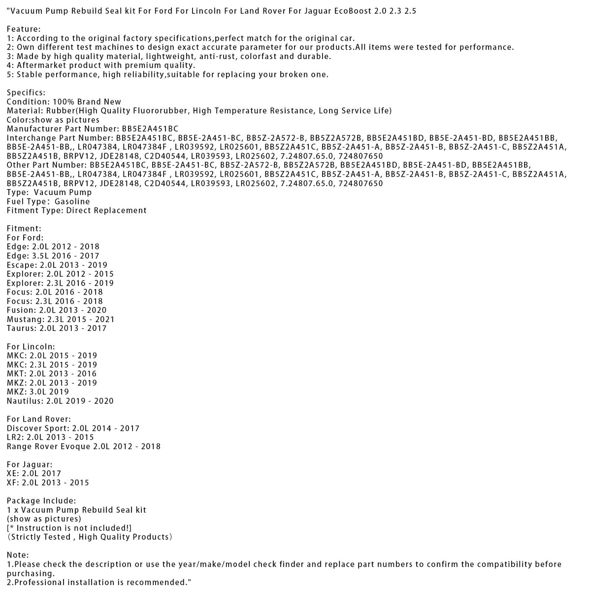 Vakuumpumpe Rebuild Dichtung kit Für Ford Lincoln Für Land Rover Für Jaguar EcoBoost