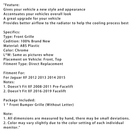 2012–2015 Jaguar XF XF-R Stil Frontstoßstangengrill Kühlergrill Chrom