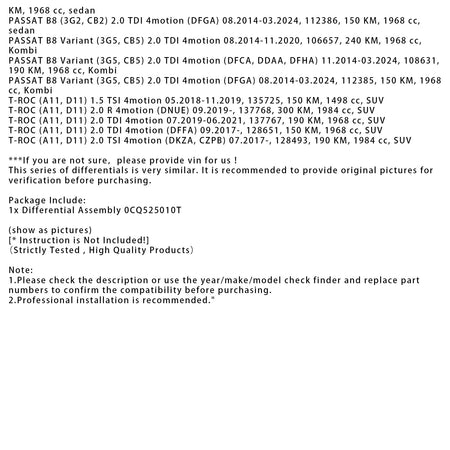Hinterachse Getriebe Differential 0CQ525010T Für VW SKODA AUDI SEAT AWD 4X4