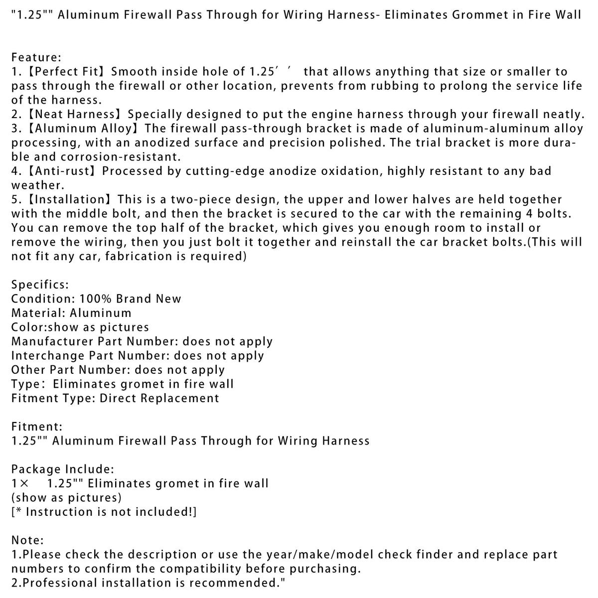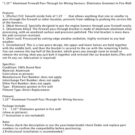 1. 【Perfekte Passform】 Glatte Innen?ffnung von 1,25 Zoll, die es allem dieser Gr??e oder kleiner erm?glicht, durch die Brandmauer oder an andere Stellen zu gelangen, und Reibung verhindert, um die Lebensdauer des Kabelbaums zu verl?ngern.