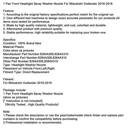 1 Paar Frontscheinwerfer-Waschdüsen passend für Mitsubishi Outlander 2016-2018