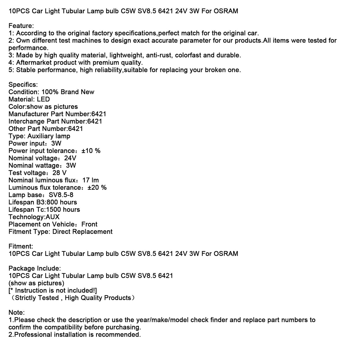 10 STÜCKE Auto Licht Rohrlampe birne C5W SV8.5 6421 24 V 3 Watt Für OSRAM