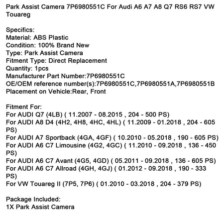 Einparkhilfe Kamera 7P6980551C Für Audi A6 A7 A8 Q7 RS6 RS7 VW Touareg