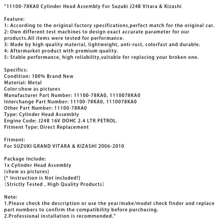 11100-78KA0 Zylinderkopf-Baugruppe für Suzuki J24B Vitara & Kizashi