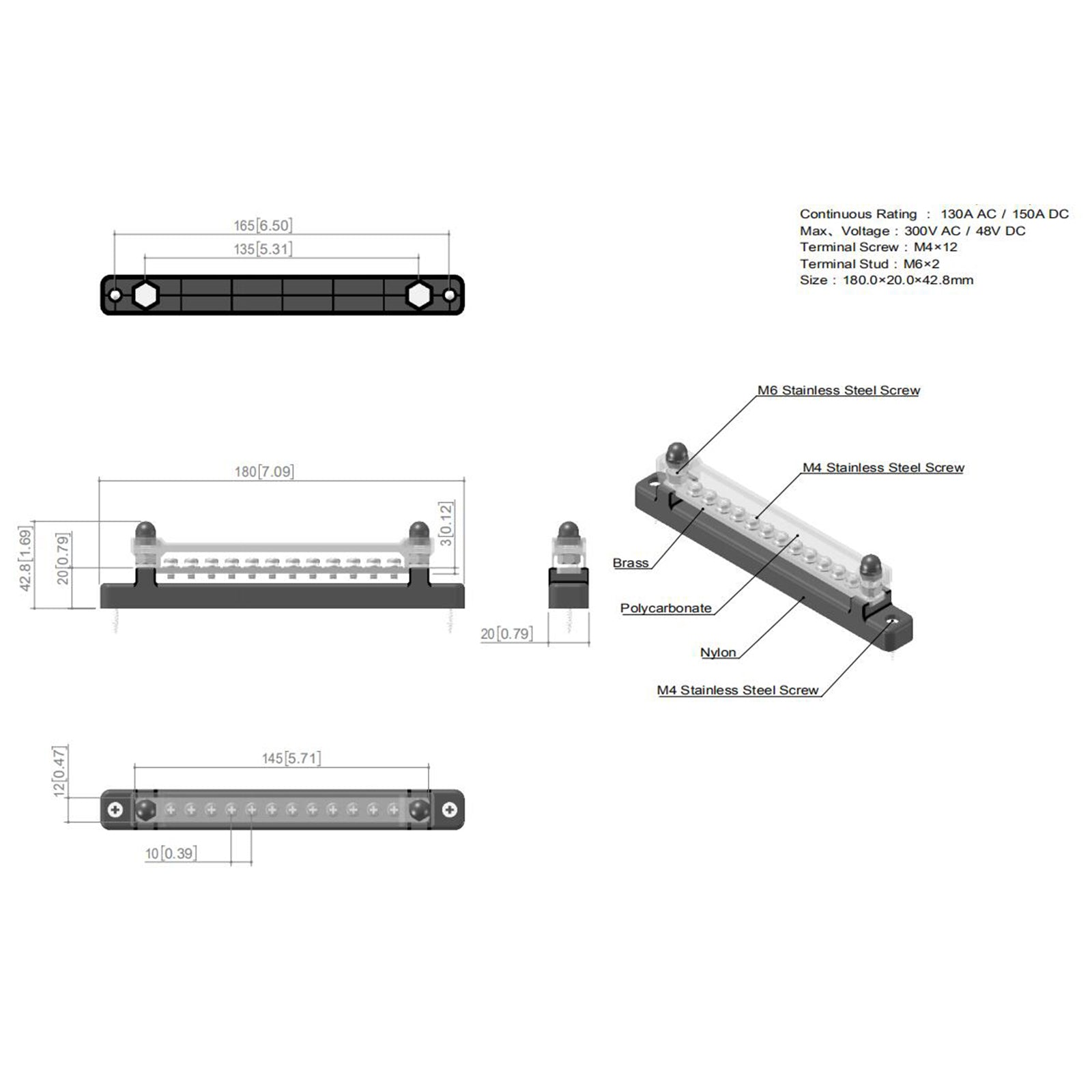12 Borne Bus Bar 150A Fil Block Distribution Au Sol Auto Camion RV Bateau Kit Générique