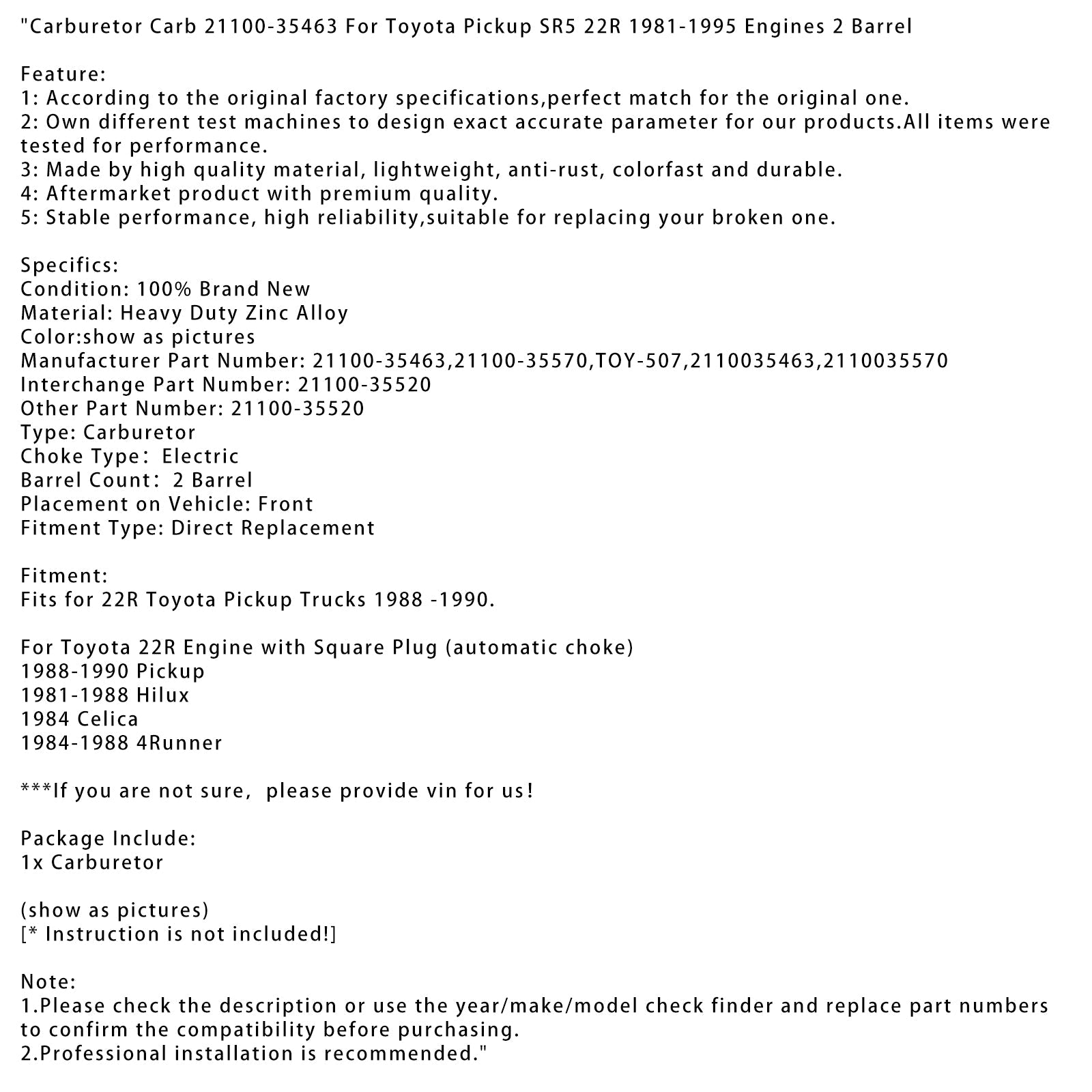 Vergaser Carb Fit Für Toyota Pickup SR5 22R 1981-1995 Motoren 2 Barrel 21100-35463