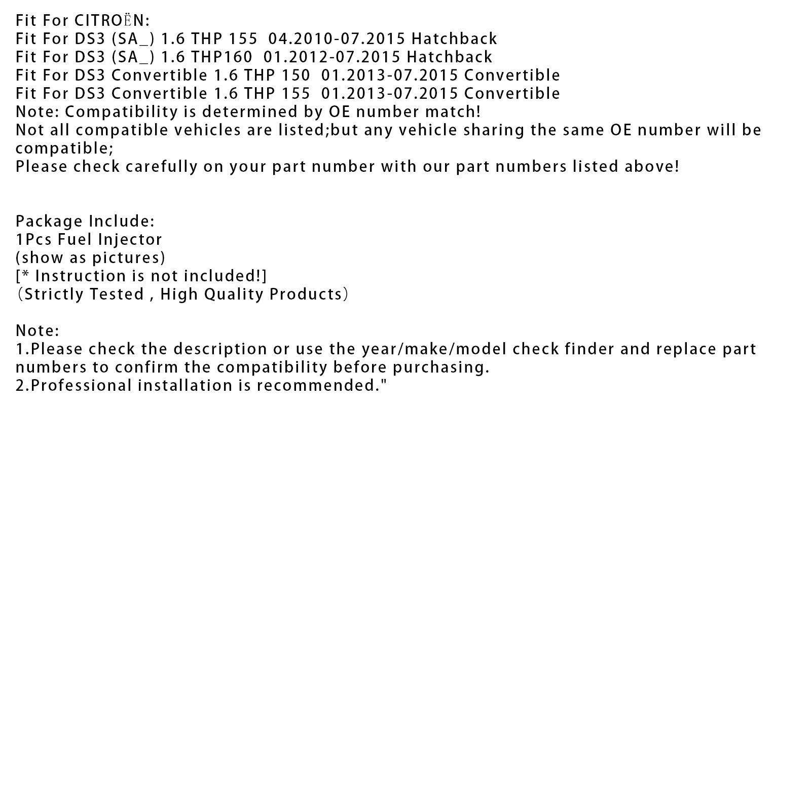 1. Bitte überprüfen Sie vor dem Kauf die Beschreibung oder verwenden Sie die Teilenummern-Prüfung (Jahr/Marke/Modell) und vergleichen Sie die Teilenummern, um die Kompatibilität zu bestätigen.