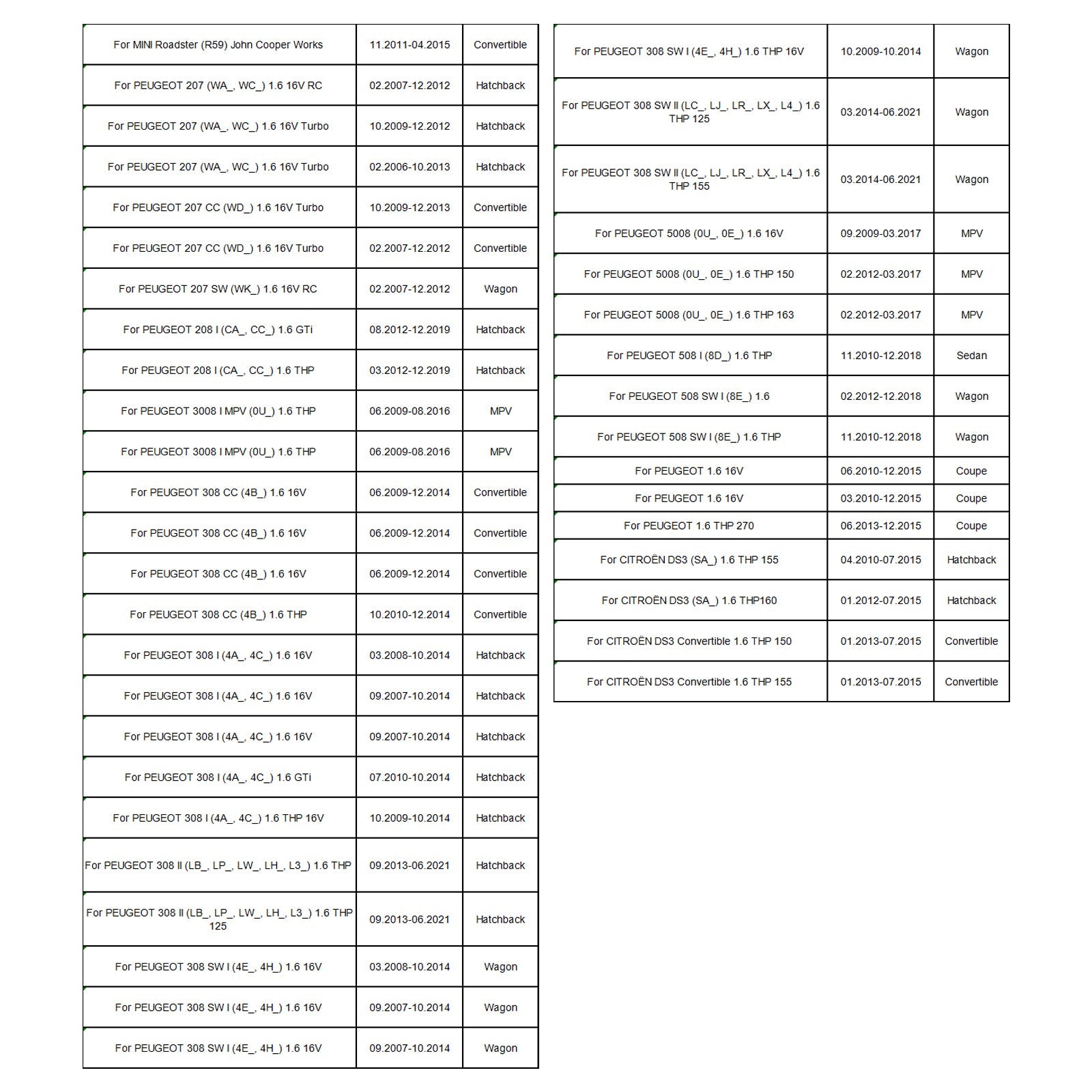 Passend für 308 cm³ (4B_) 1.6 THP 10.2010-12.2014 Cabriolet