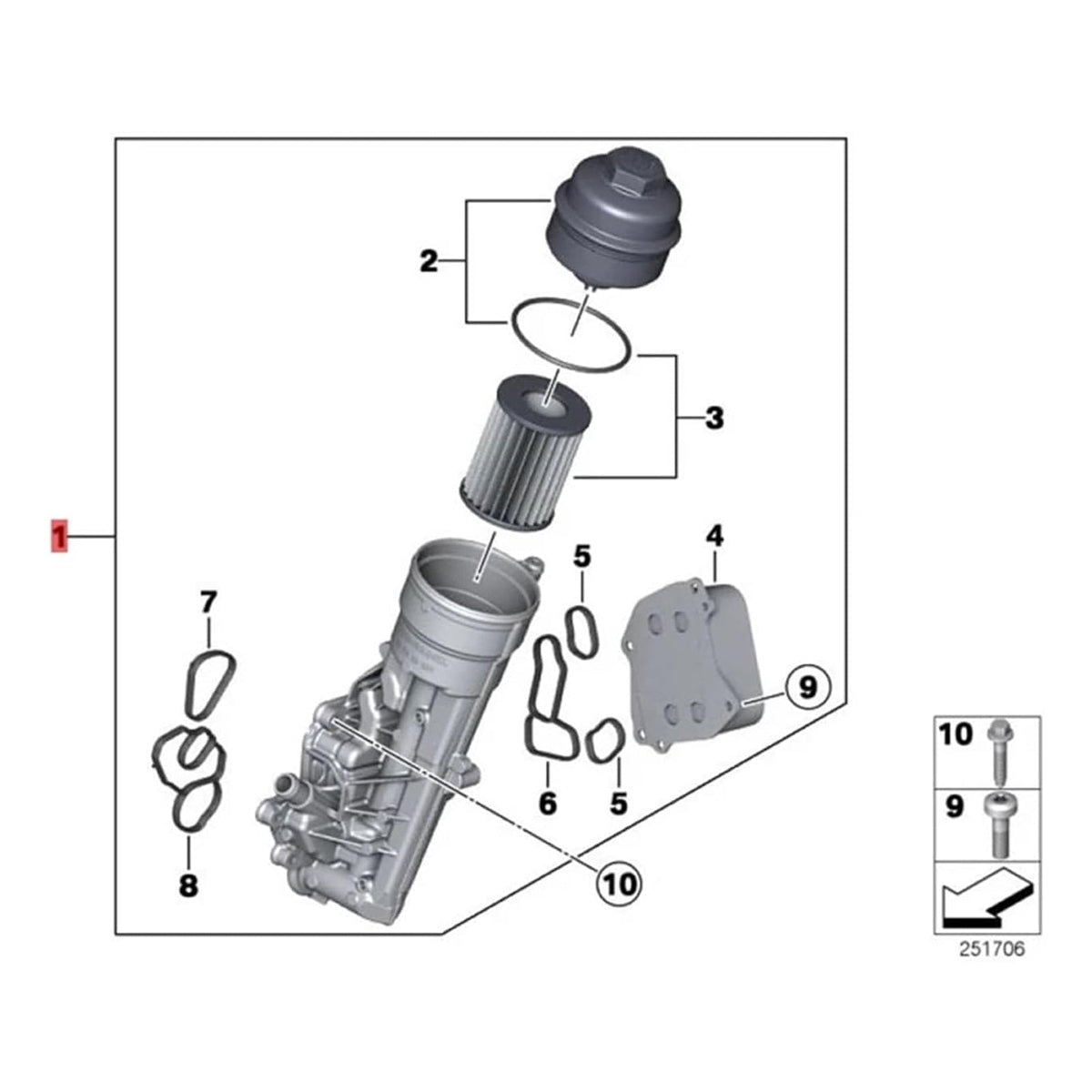 1x Ölkühlerfiltergehäuse mit Ölkühler