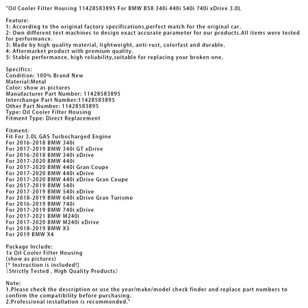 Ölkühler Filtergehäuse 11428583895 Für BMW B58 340i 440i 540i 740i xDrive 3.0L