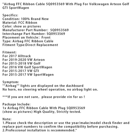 Airbag FFC Band Kabel 5Q0953569 Mit Stecker Für Volkswagen Arteon Golf GTI SportWagen