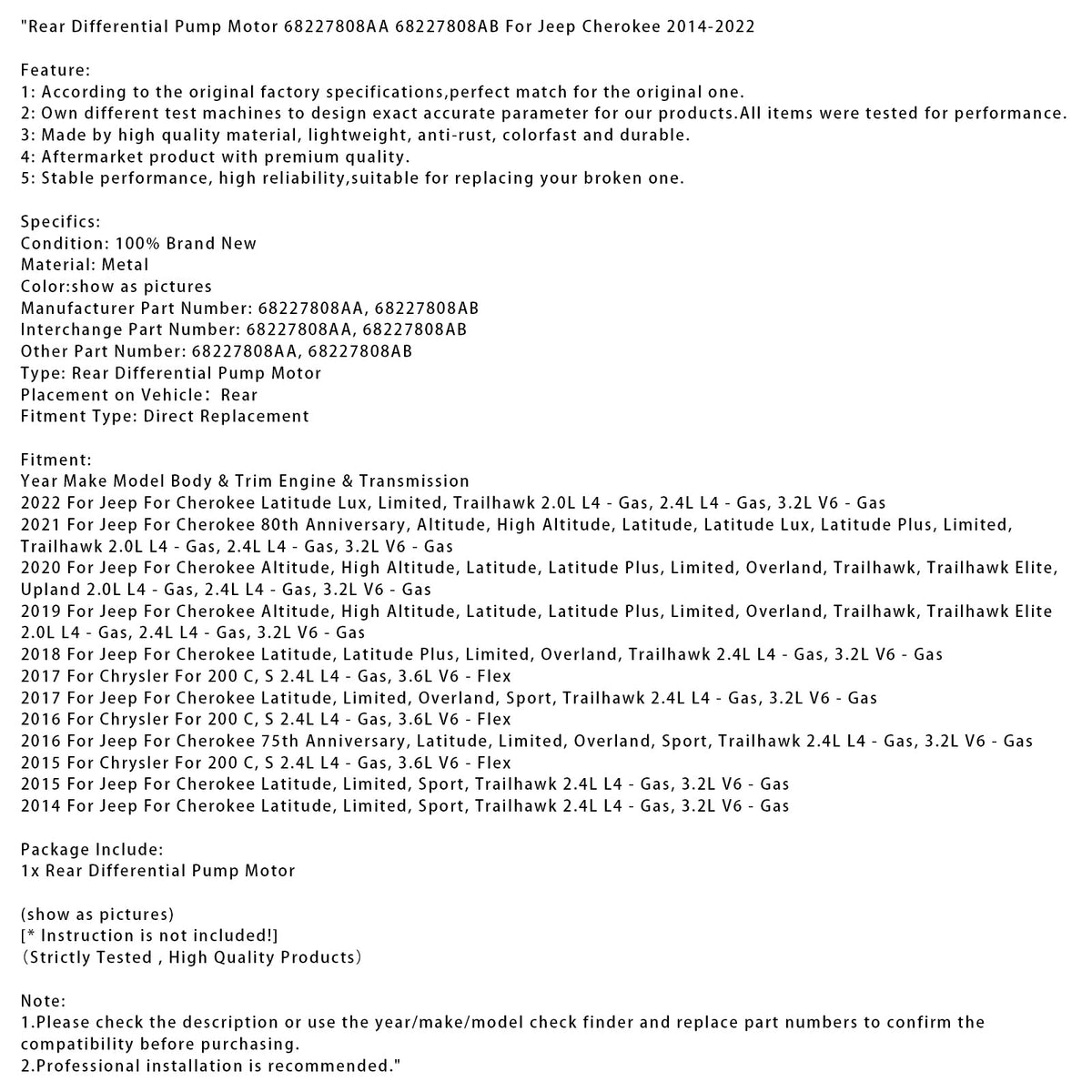 Hinten Differential Pumpe Motor 68227808AA 68227808AB Für Jeep Cherokee 2014-2022
