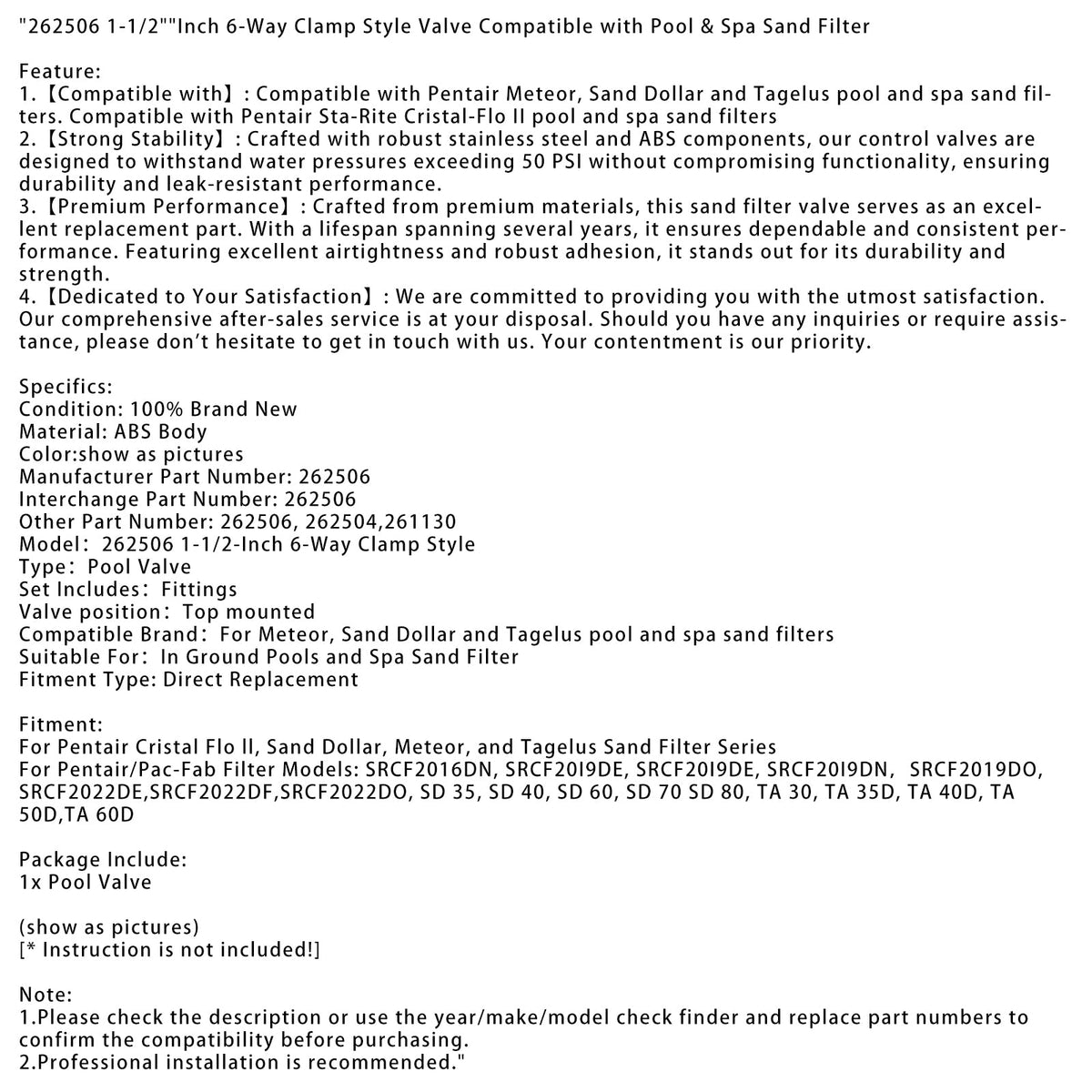 262506 1-1/2" Zoll 6-Wege-Klemmventil Kompatibel mit Pool- und Spa-Sandfilter