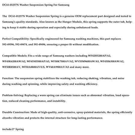 2PC DC61-01257N Washer Suspension Frühling Für Samsung Ersetzt 592-49396 592-49474