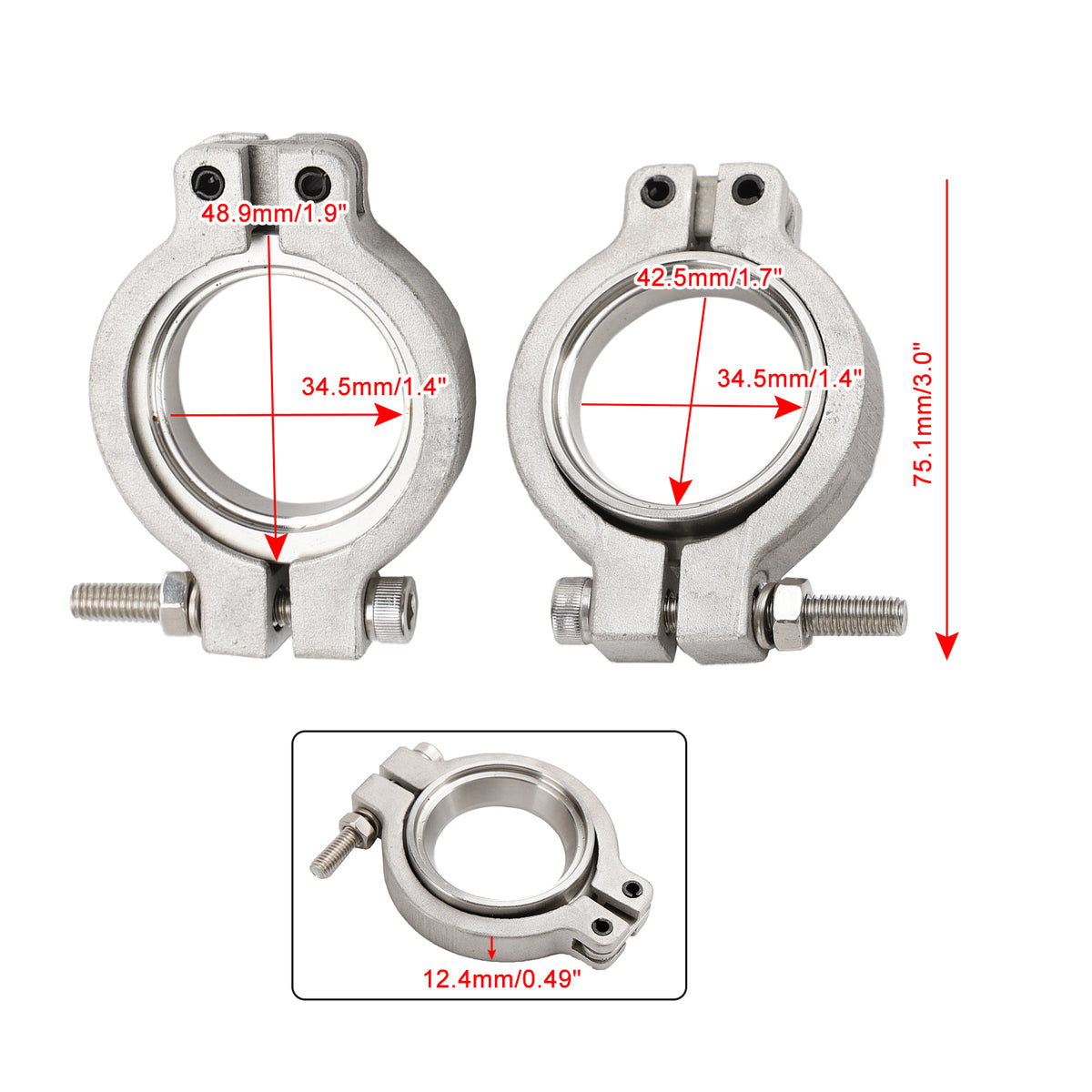 2x V-Bands (le diamètre intérieur des pinces est d'environ 4,9 cm et 4,3 cm comme indiqué sur les photos)