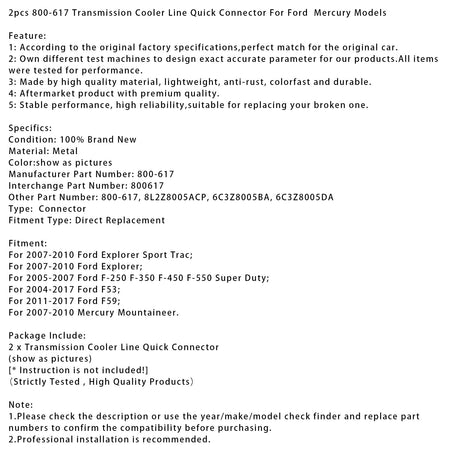 2PCS 800-617 Übertragung Kühler Linie Schnell Anschluss Für Ford Mercury Modelle