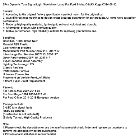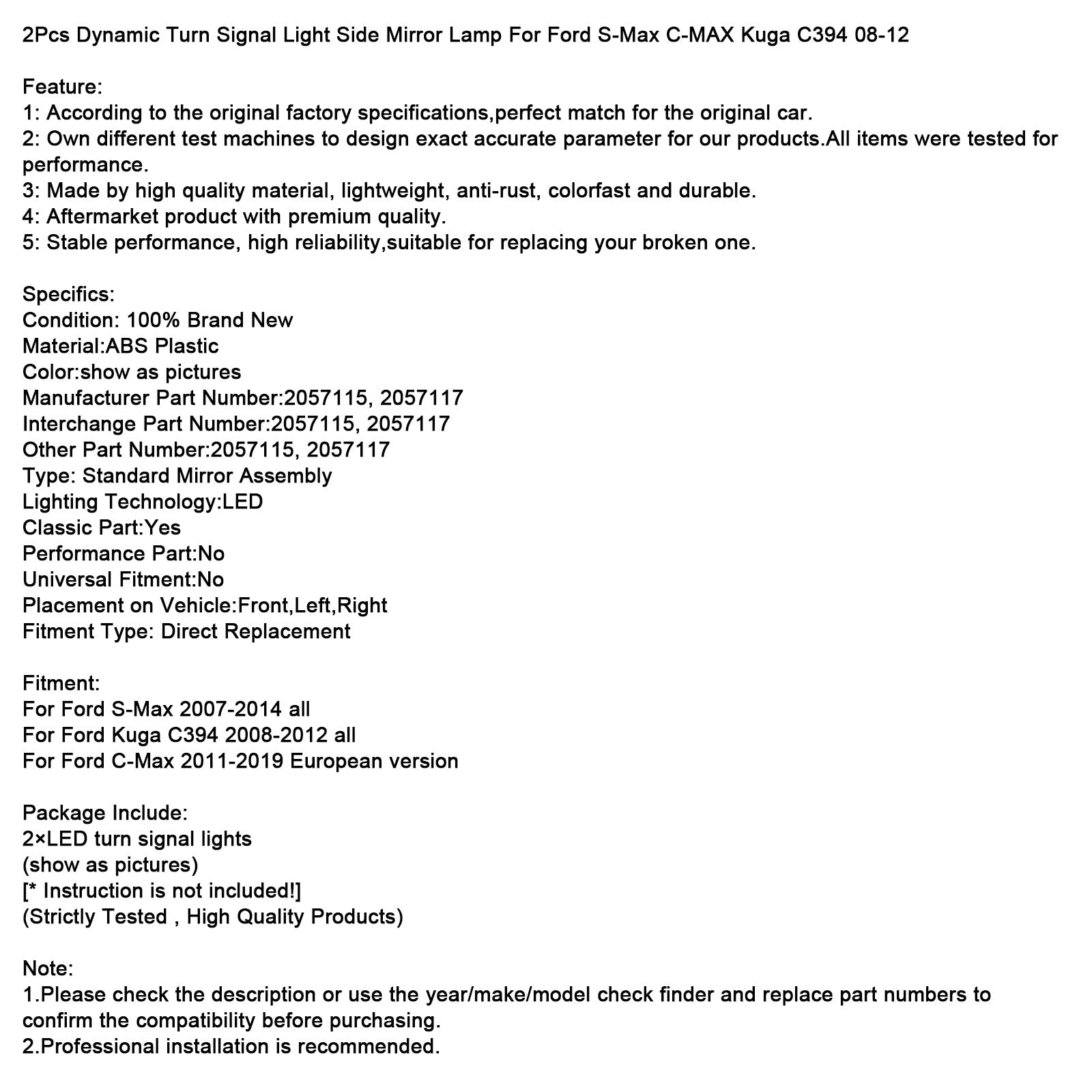 2Pcs Dynamische Blinker Licht Seite Spiegel Lampe Für Ford S-Max C-MAX Kuga C394 08-12