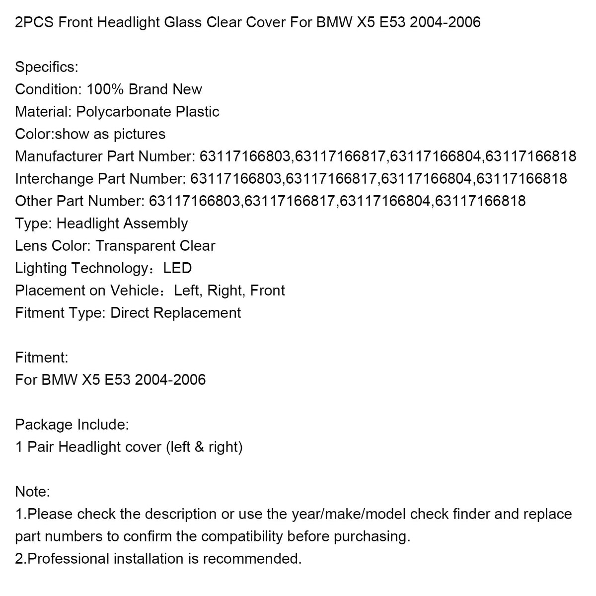 2PCS Front Scheinwerfer Glas Klar Abdeckung Für BMW X5 E53 2004-2006