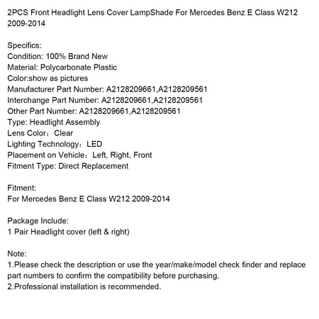 2PCS Front Scheinwerfer Objektiv Abdeckung Lampenschirm Für Mercedes Benz E Klasse W212 2009-2014