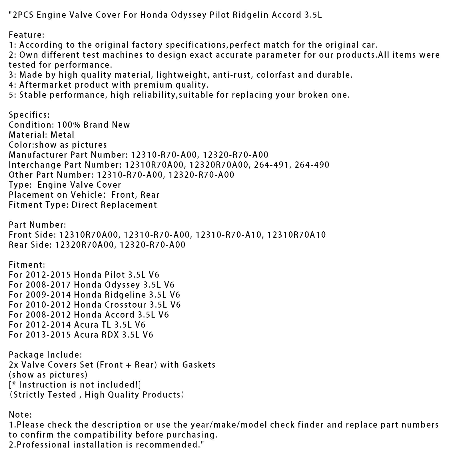 2PCS Vorne + Hinten Motor Ventil Abdeckung Für Honda Odyssey Pilot Ridgelin Accord 3,5 L