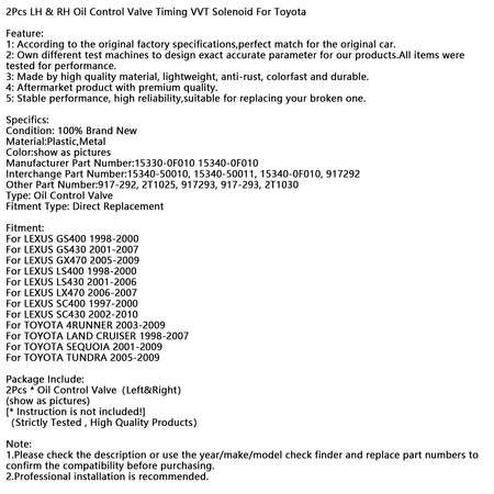 2Pcs LH & RH Öl Regelventil Timing VVT Magnet Für Toyota