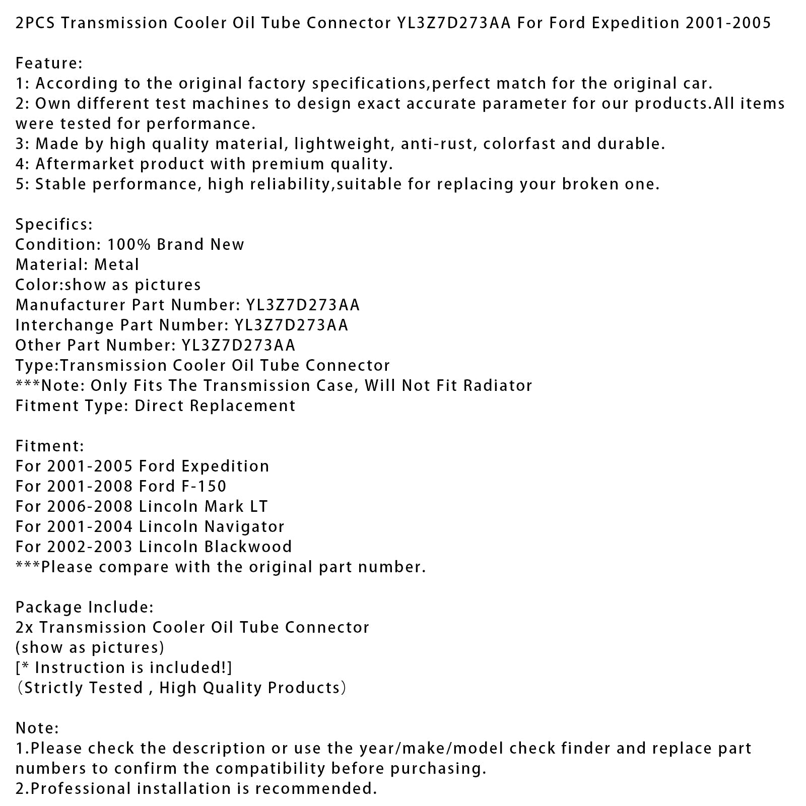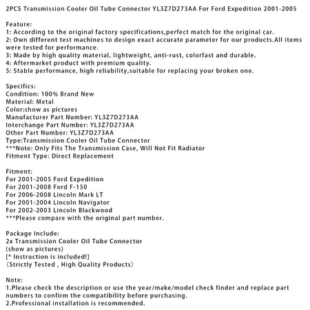 2PCS Übertragung Kühler Öl Rohr Stecker YL3Z7D273AA Für Ford Expedition 2001-2005