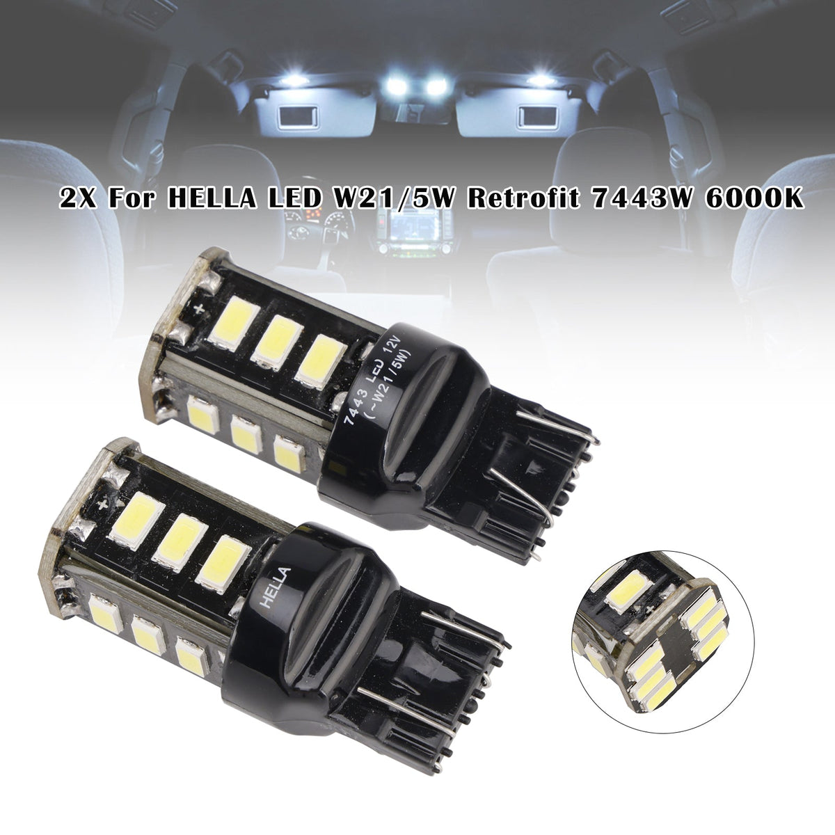 2X Für HELLA LED Retrofit 7443W Keil T5 12V 3W W21/5W 6000K