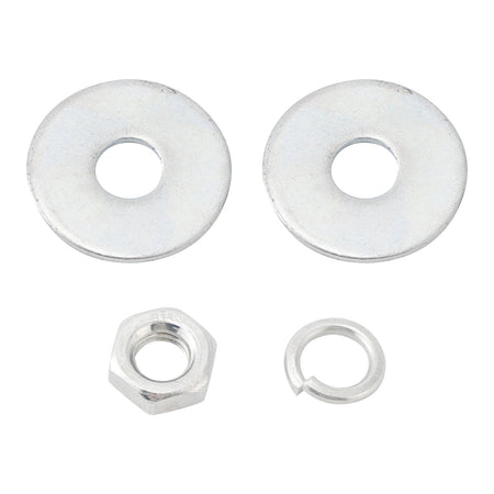 2er-Set Schrauben inkl. Unterlegscheiben, Muttern und Sicherungsringen gegen Abrollen.