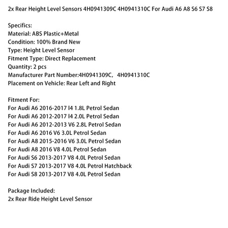 2x Höhenniveausensoren hinten 4H0941309C 4H0941310C für Audi A6 A8 S6 S7 S8