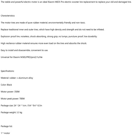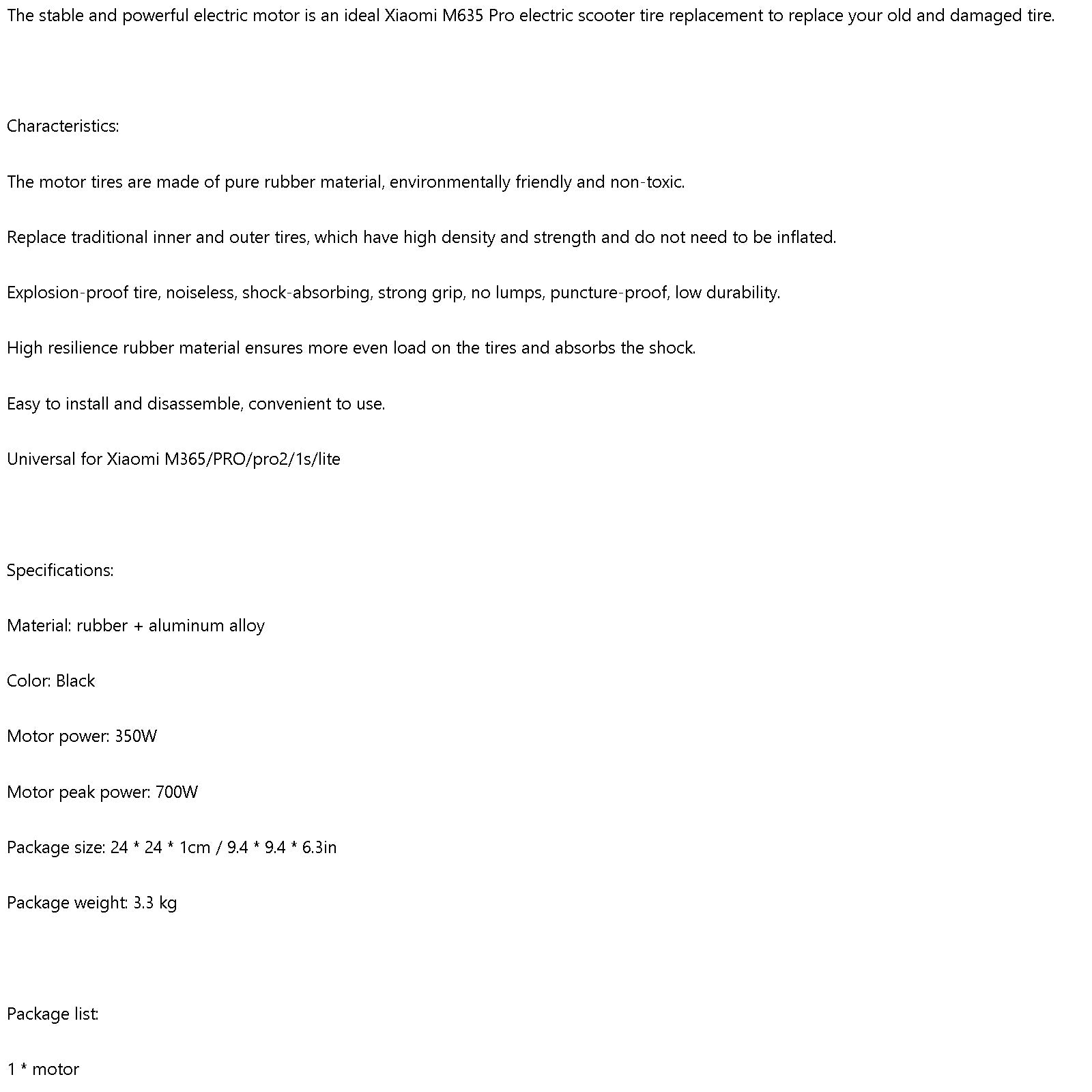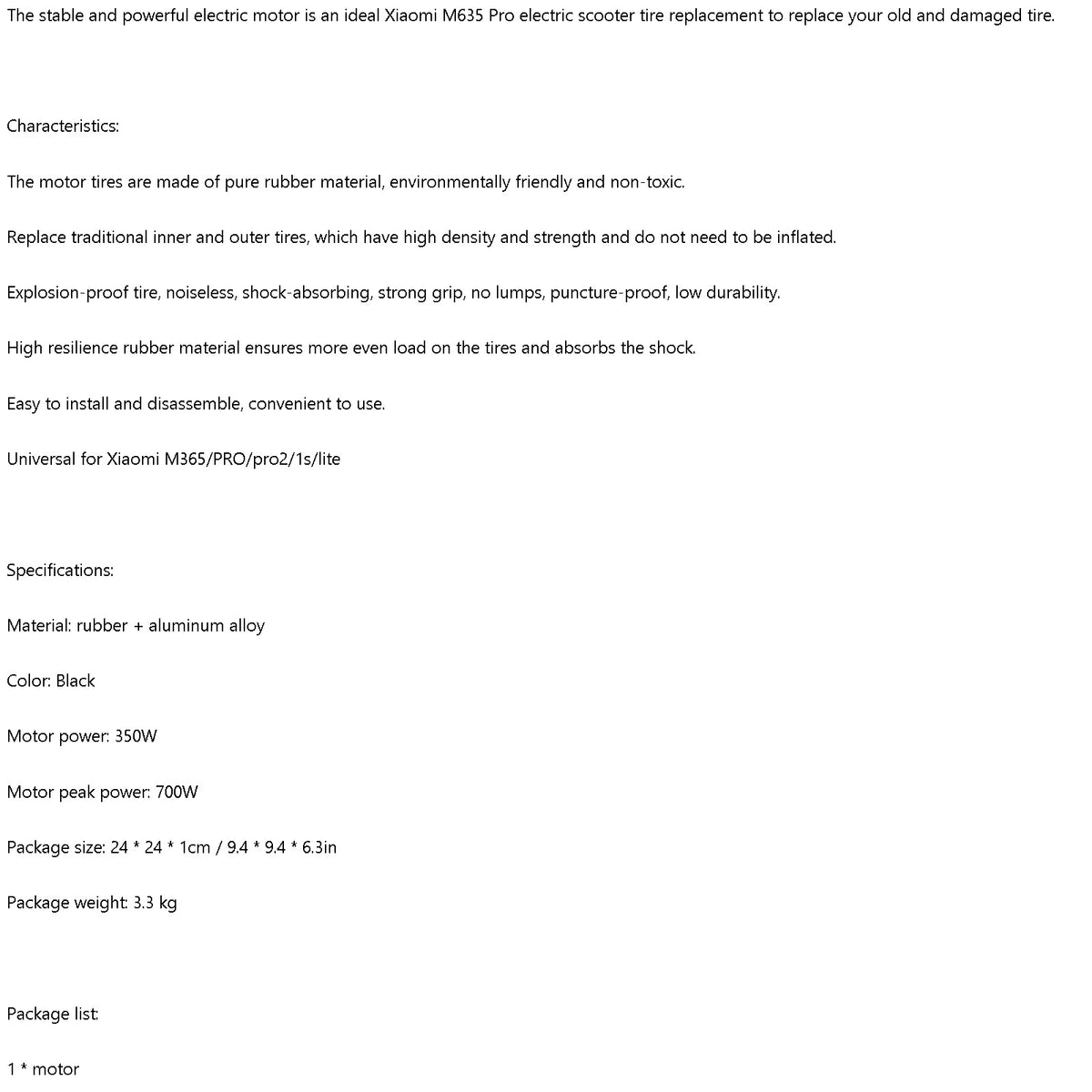 Le moteur électrique stable et puissant est un remplacement de pneu de scooter électrique Xiaomi M635 Pro idéal pour remplacer votre pneu ancien et endommagé.