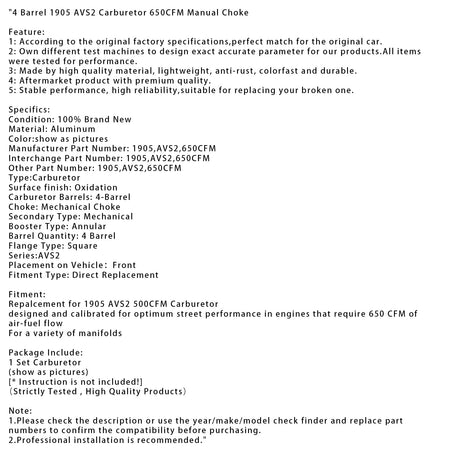 Ersatz für 1905 AVS2 500CFM Vergaser