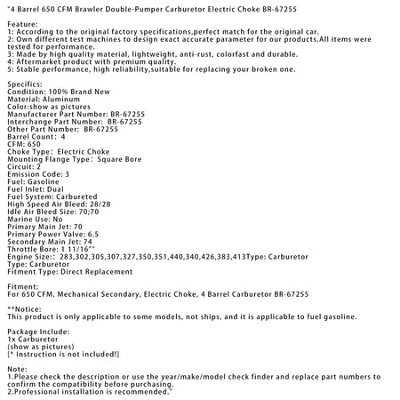 4-Zylinder-Vergaser mit 650 CFM und Doppelpumpe, elektrischer Choke BR-67255