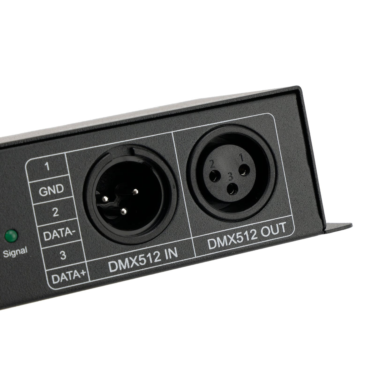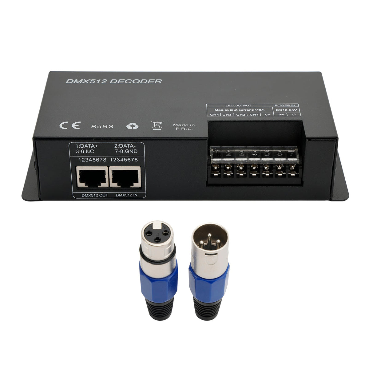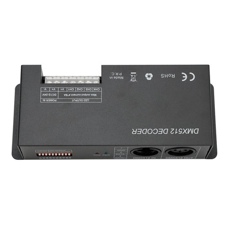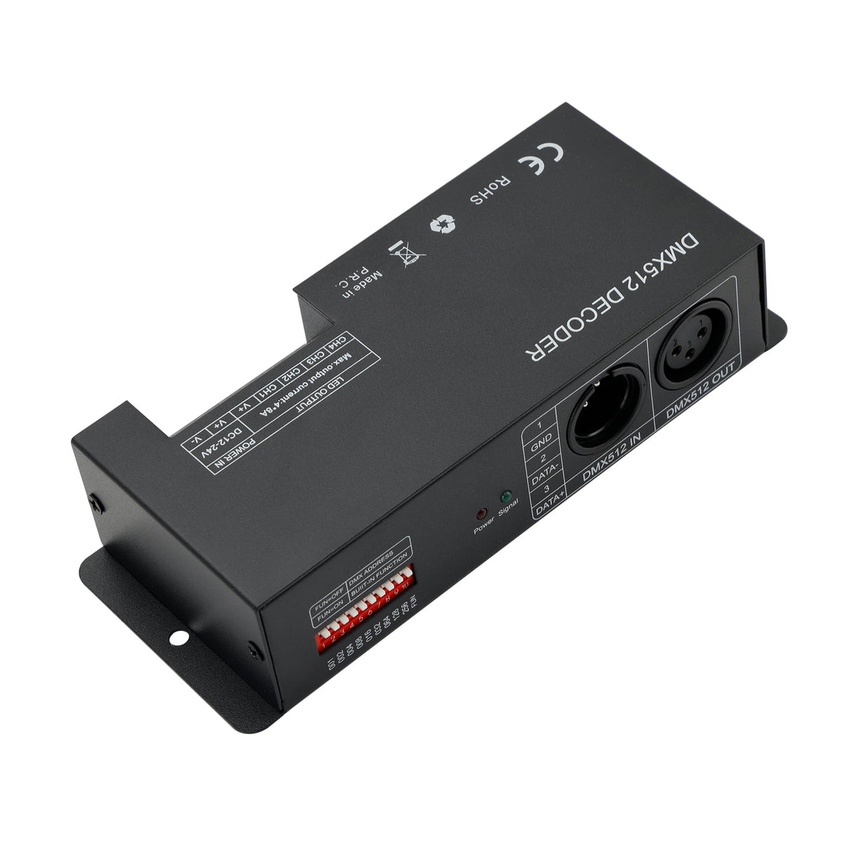 Dieser DMX512-Decoder verwendet eine fortschrittliche Mikrosteuereinheit. Er kann das international weit verbreitete digitale Standardsteuersignal DMX-512 empfangen. Er wandelt das Signal in ein PWM-Steuersignal um, um die LED-Lampe zu bet?tigen. Er kann auch die digitale DMX-Konsole anschlie?en, um das Licht oder jeden dynamischen Effekt zu ?ndern. Wenn der Decoder nicht mit der DMX-Konsole verbunden ist, kann er au?erdem als synchroner Controller verwendet werden. Das hei?t, Sie k?nnen eine Anzahl von Decodern und LED-Leuchten synchron steuern.