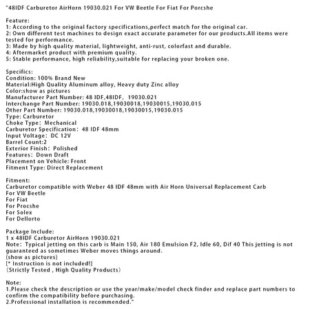 48IDF Vergaser AirHorn 19030.021 Für VW Käfer Für Fiat Für Porcshe