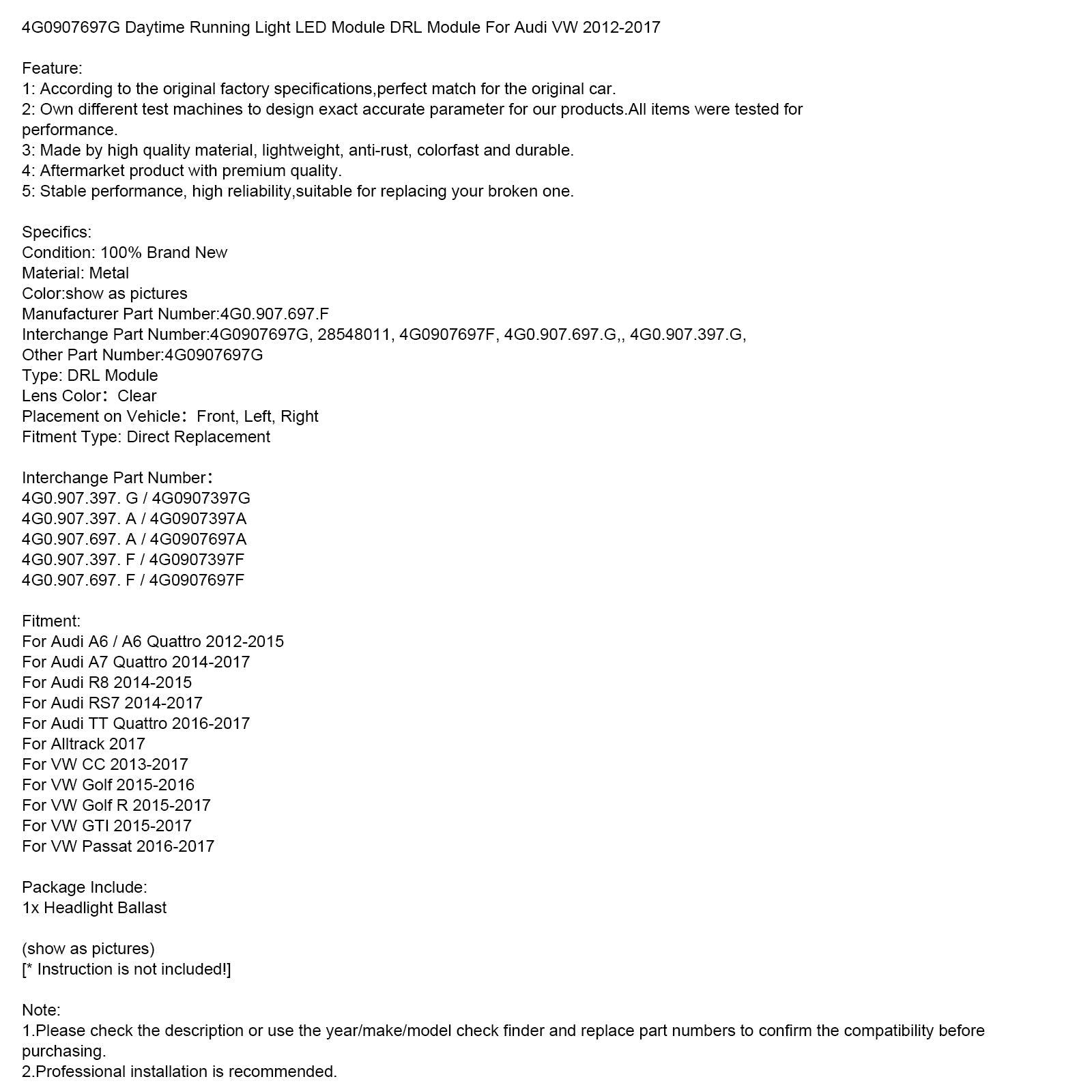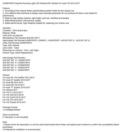 4G0907697G Tagfahrlicht LED Modul DRL Modul Fit Für Audi VW 2012-2017